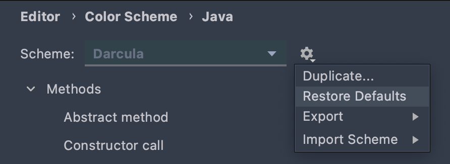 나는 Intellij에서 Darcula라는 기본 컬러 스킴을 사용하고 있다. 다른 스킴을 사용해보려고 했는데, 예쁘기는 하지만 색깔이 너무 다양해서 좀 정신없다는 생각이 들어서 결국에는 Darcula에 정착하게 되었다.